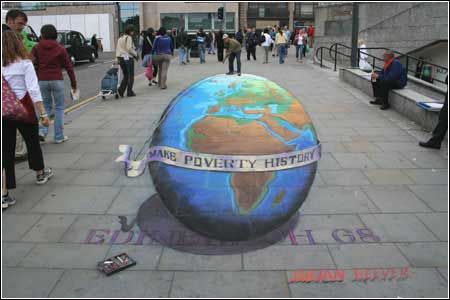 一顆地球,經過計算之後的變形,在人行道上原來有這------麼長!